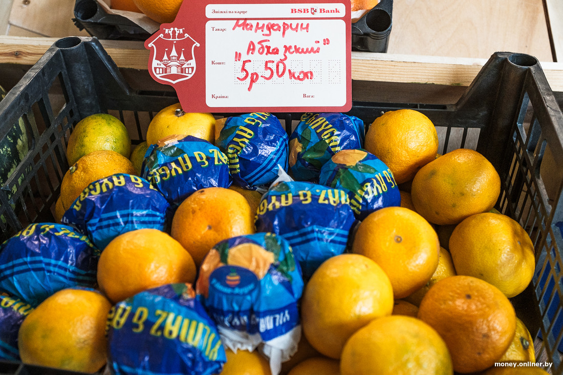 В бакалее можно приобрести кофе, масла, чаи, специи, импортные конфеты и шоколад. Мандарины продаются в среднем по 9,5 рубля.