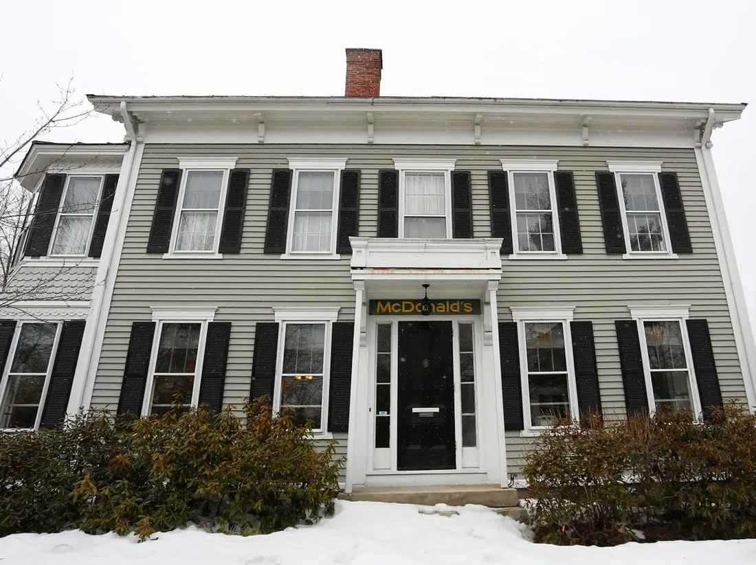 Заведений McDonald’s, которые располагаются в бывших частных исторических особняках, не так уж и мало, хотя, конечно, на фоне остальных ресторанов сети их количество все равно исчезающе мало. Во Фрипорте, маленьком рыбацком городке в штате Мэн на северо-востоке США, заведение разместилось в усадьбе, построенной еще в 1850 году семьей Гор. Зданию присвоен статус памятника архитектуры, а потому городские власти и жители Фрипорта далеко не сразу согласились с размещением в нем фастфуда.