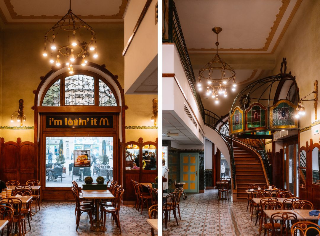 Как известно, корпорация McDonald’s любит выбирать для своих якорных заведений самые что ни на есть центральные локации. Поэтому неудивительно, что часто эти рестораны размещают в исторических зданиях. При этом управляющие компании, увы, далеко не всегда сохраняют оригинальные интерьеры памятников архитектуры. Следующие примеры как раз такие.