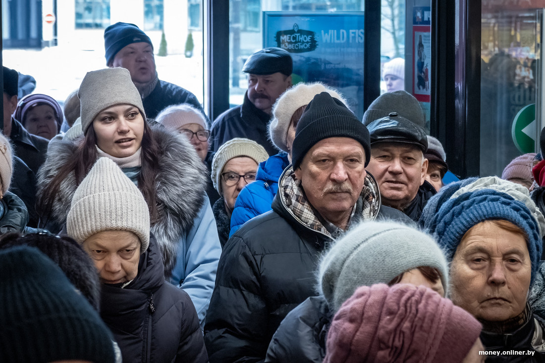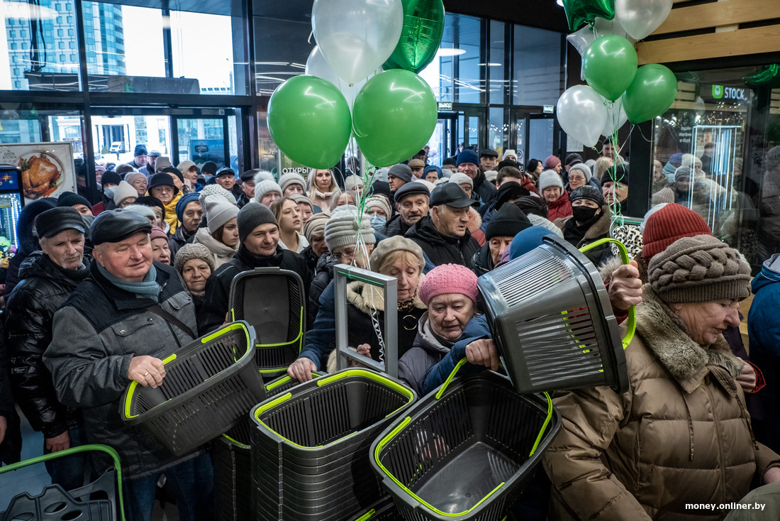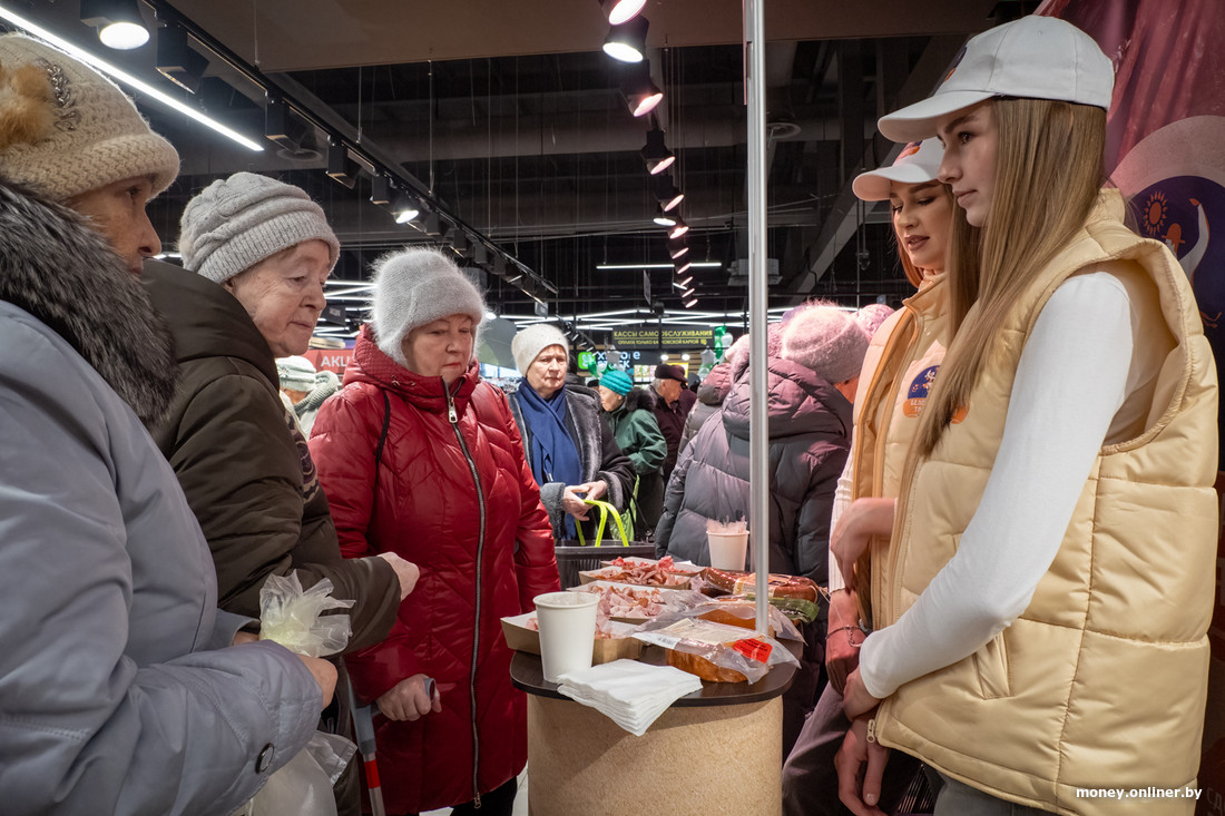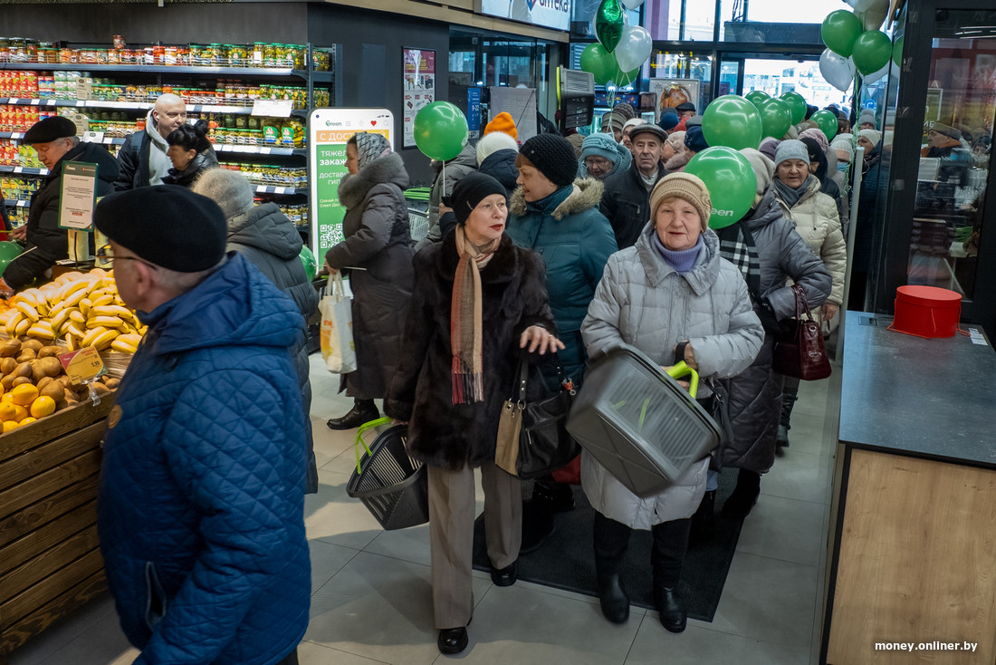 Первые посетители могли бесплатно угоститься колбасными изделиями во время дегустации. Люди стояли в очереди за дисконтными картами. Магазин оснащен кассами самообслуживания.