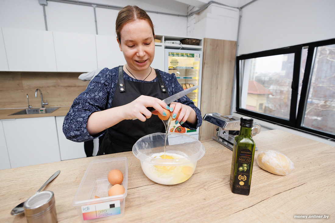 — Белорусская мука, к сожалению, не подходит для нашей пасты. Тут заготовлено 300 граммов семолины. Состав максимально простой: мука, яйца, оливковое масло, никаких дополнительных добавок. Некоторые почему-то спрашивают: «А сахар есть?» Какой сахар?! Мы за очень простые и честные продукты, которые можно четко прочувствовать в плане вкусовых моментов.