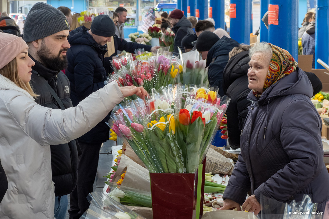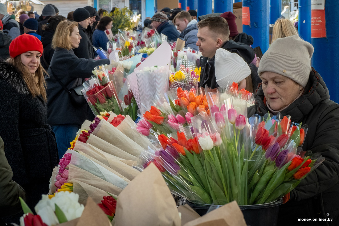 — Сейчас более 140 торговых мест сезонного рынка заняты тюльпанами, из них более половины предложений — от производителей. В основном это Брестская область — те же люди, которые выращивают в сезон огурцы, помидоры, баклажаны. Цветы к 8 Марта высаживают за три месяца, выгоняют именно под этот праздник. Убрали урожай тюльпанов — заняли теплицы другим видом продукции. Там люди не скучают, — рассказывает Иван Ткачук, заместитель генерального директора по развитию Комаровского рынка.