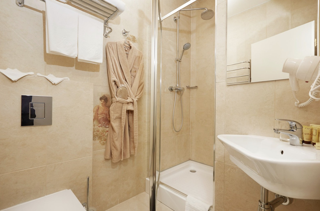 — Это могут быть номера «Стандарт», двухместный однокомнатный «Люкс», двухместный двухкомнатный «Люкс». «Стандарт» — это две полуторные отдельно стоящие кровати, если простыми словами. Цена в таком случае будет 61,4 рубля с человека. В нее входят пятиразовое питание и проживание. «Люкс» — это двухспальная кровать, диван, телевизор, холодильник, электрочайник, душевая кабинка — 80,7 рубля. Процедуры входят в стоимость только начиная с путевки на семь дней, вам можно будет купить их отдельно. Есть «но»: так как это выходные дни, нужно уточнять, что из всего перечня будет работать.