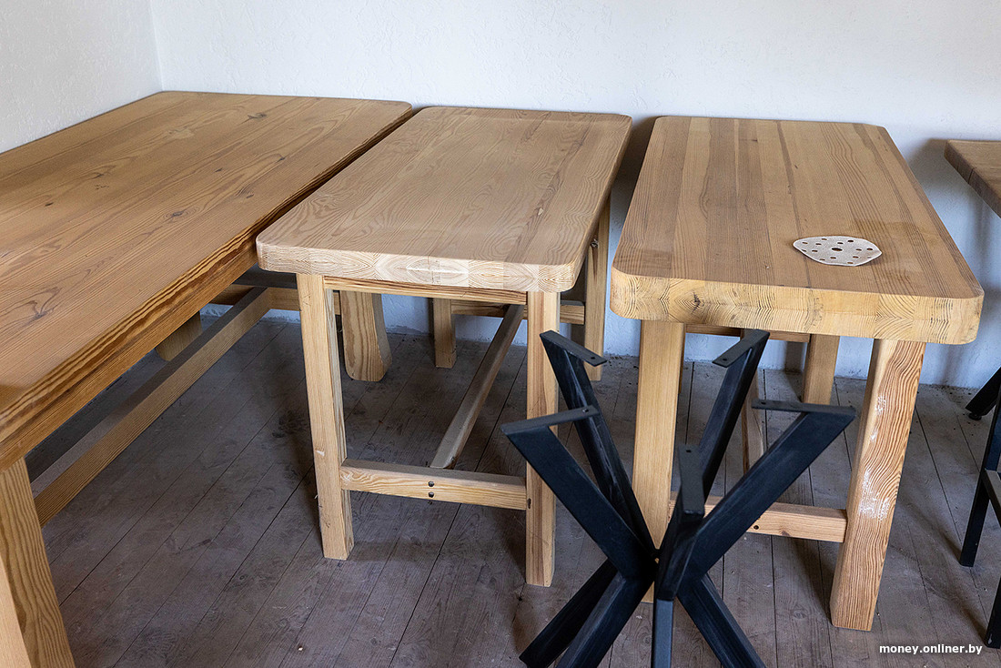— Сосна — это просто кошмар. Такая мягкая, что ногтем проведешь — и сразу царапина появляется. А ДСП и ЛДСП — вообще не понимаю, зачем люди покупают столы из этого? Вода попала — и он уже разбух, как кекс в духовке. Мы работаем с натуральным деревом: бук, ясень, лиственница, вишня, яблоня, карагач, груша. Оно по крайней мере не боится ни ногтей, ни воды. Только из таких материалов можно сделать что-то стоящее, — продолжают братья.
