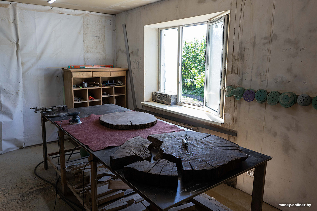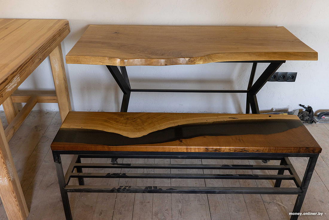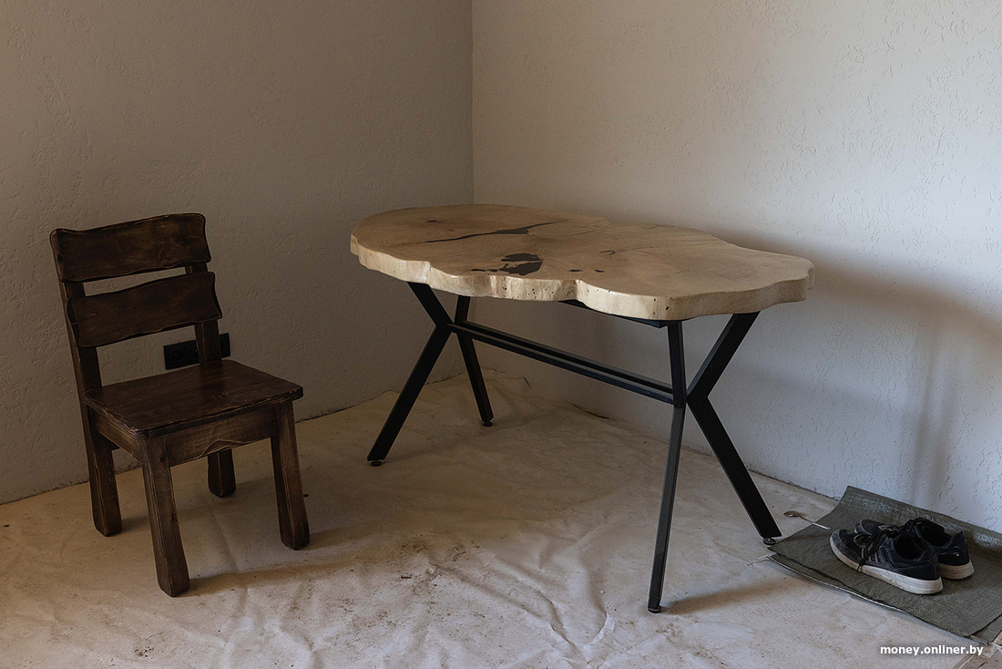 — Первый заказ получили в Минске. Мы тогда уже научились заливать столики, но под заказ еще не работали. Не знали даже, как формировать цену, — продолжает Максим (сейчас знают: в конечную цену входит стоимость дерева, смолы и труда). — Заработали, наверное, долларов 100 на двоих, но отбили материал — уже хорошо.