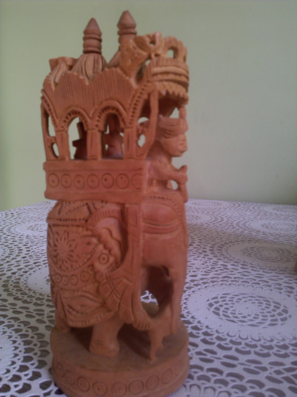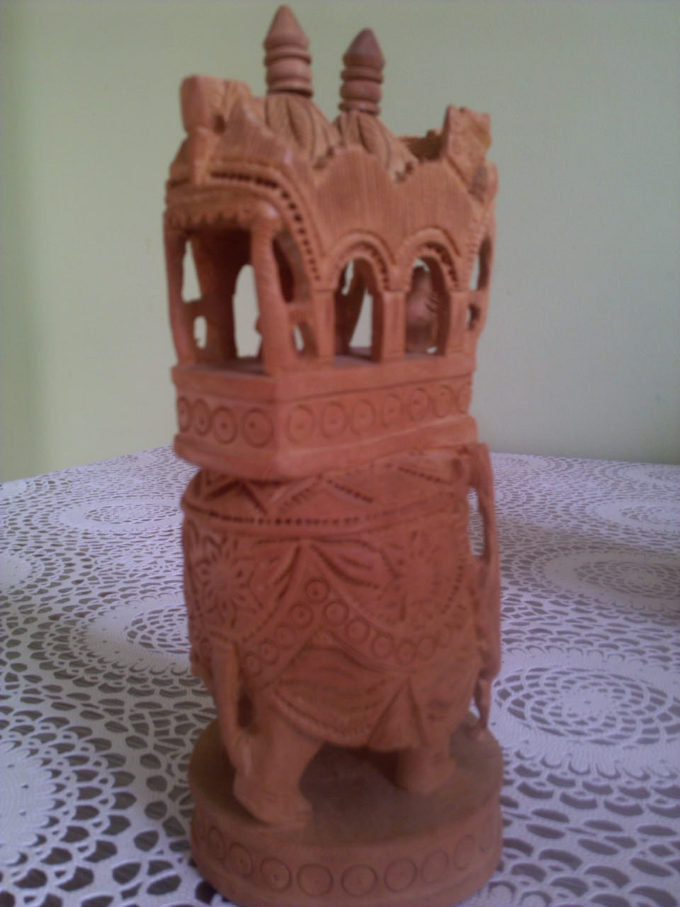 Слон с паланкином и некая емкость с крышкой, украшенная резными львами. К слову, такие слоны считаются талисманами, привлекающими в дом богатство. Стоимость таких изделий очень разная и стартует примерно с 35 рублей.
