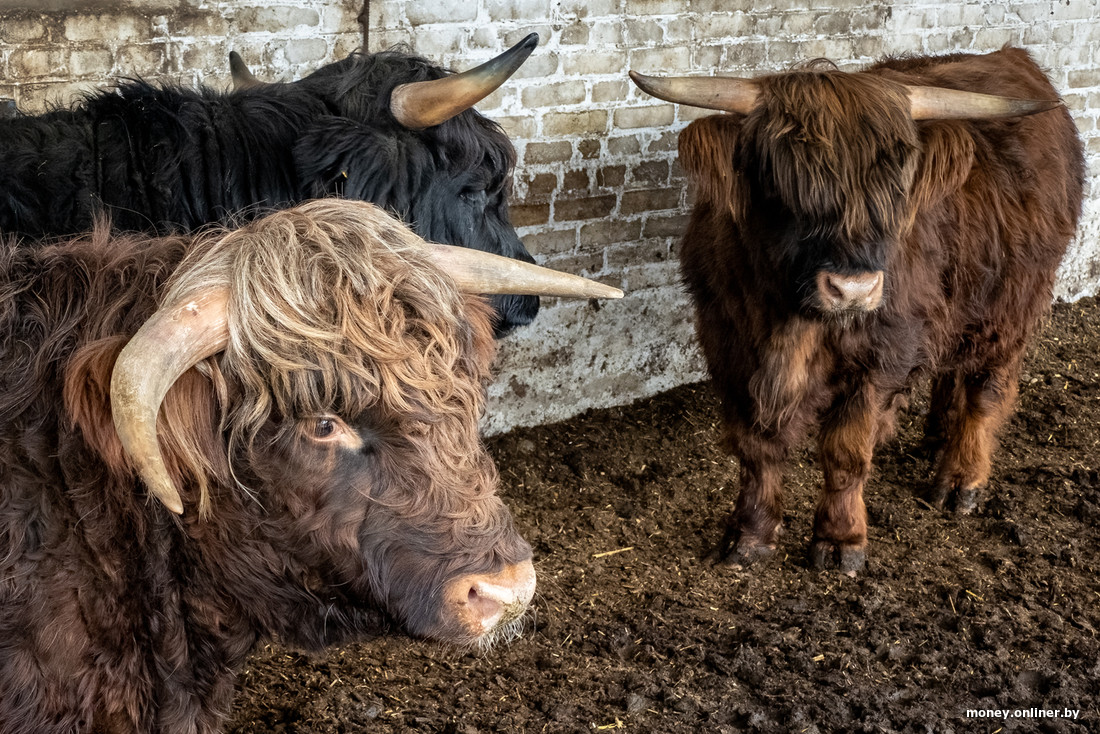 А в отдельном загоне — коровы абердино-ангусской породы. Это мясные: из них чуть позже получат мраморную говядину.