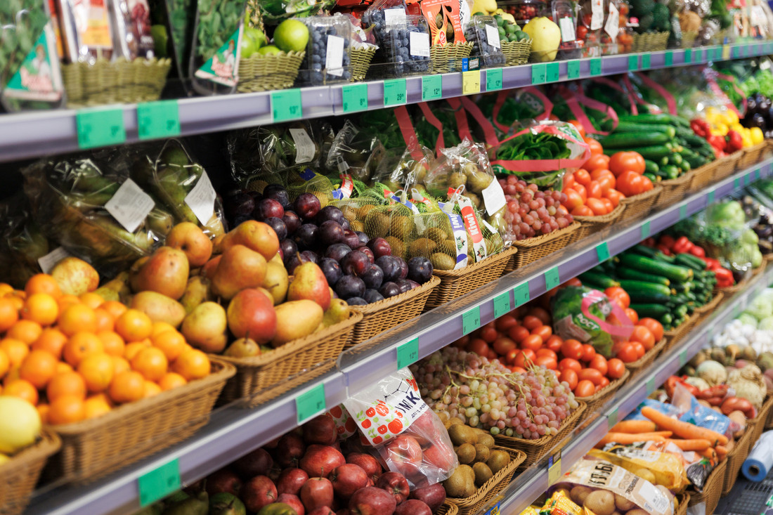 Представители сети рассказали, что в магазине широкий ассортимент в мясном отделе, много холодильников со свежемороженой рыбой (камбала, скумбрия, форель, минтай, треска, из экзотов — черный палтус). Из собственной продукции в супермаркете представлены полуфабрикаты и готовые блюда — от котлет до роллов и сырников.