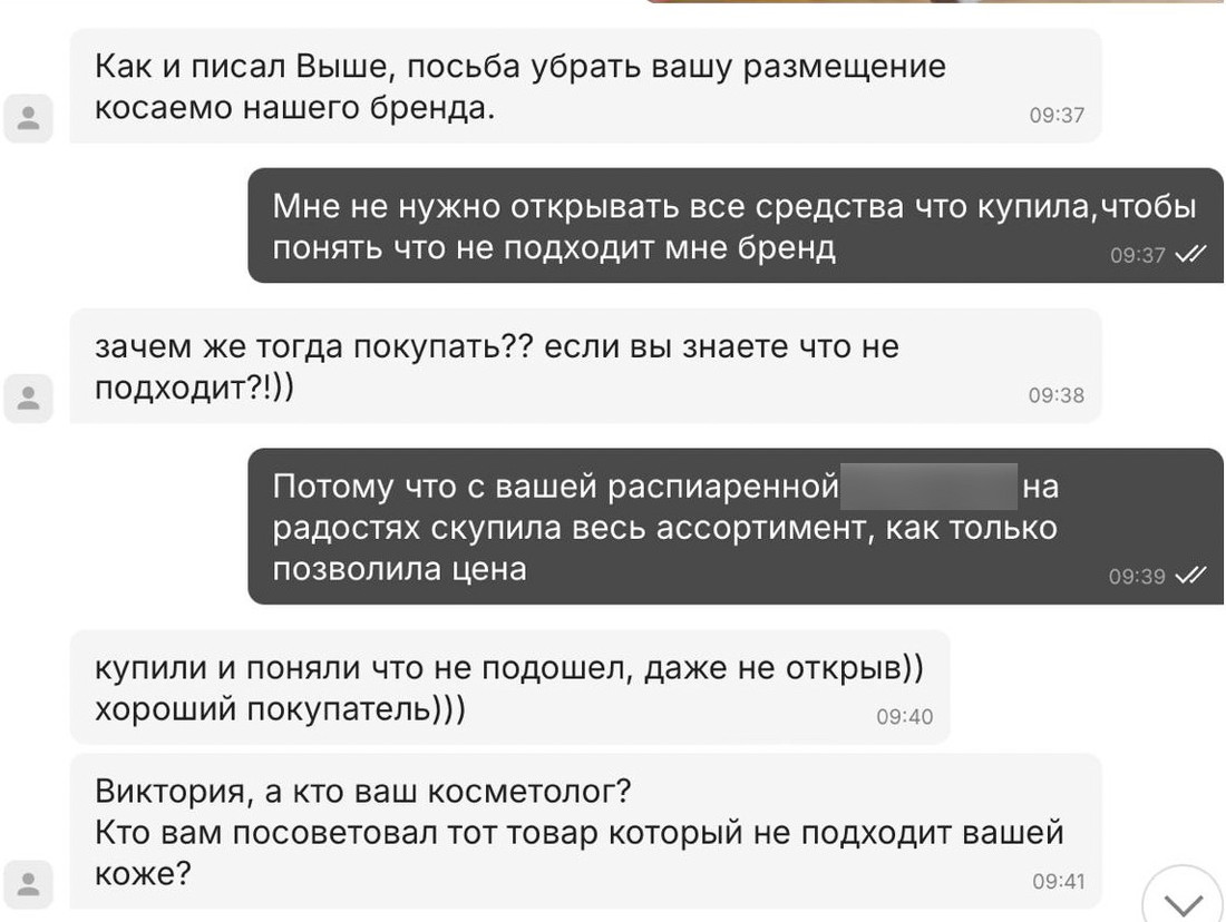 Мы связались с руководителем компании Юрием, который лично отговаривал Викторию от продажи косметики в чате барахолки. Вот что он рассказал нашим журналистам: