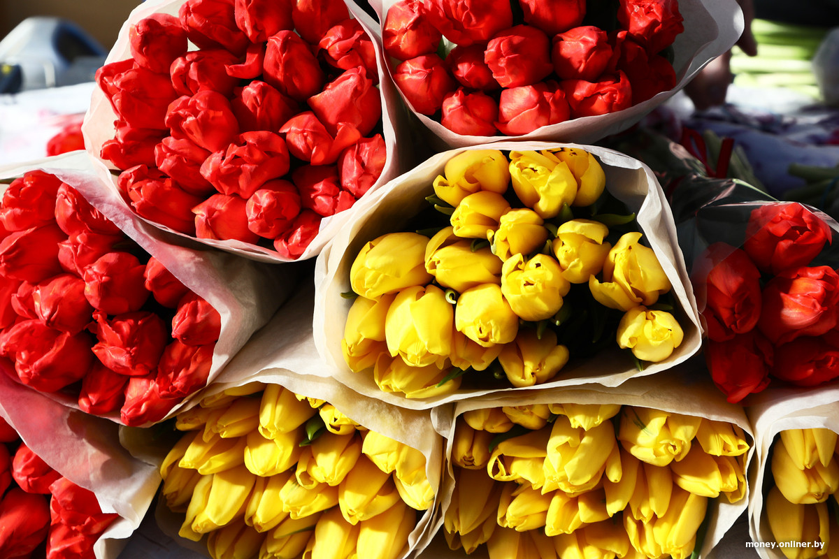 Кто-то считает 8 Марта праздником, кто-то обычным днем, но традиция дарить цветы (особенно тюльпаны) держится годами. Мы отправили фотографа на Комаровку, чтобы посмотреть, какие тюльпаны продают в этом году, сколько они стоят и как вообще выглядит главный цветочный рынок Минска за пару дней до праздника.