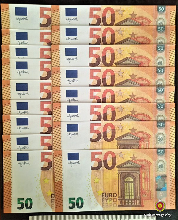 «Согласно выводам эксперта, почти все купюры номиналом 50 евро, за исключением одной, изготовлены не предприятием, осуществляющим производство продукции данного вида», — сообщили в Госкомитете судэкспертиз.