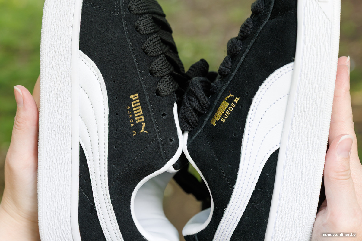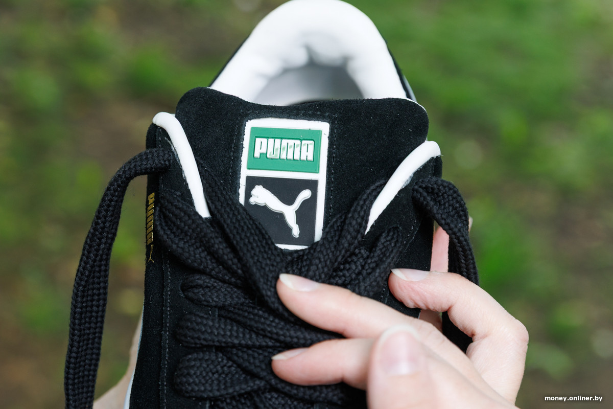 На шопинг мы отправились с целью подобрать максимально похожие популярные кроссовки и уложиться в такую разбивку бюджета: оригинал — до 400 рублей, копия — до 100. Судя по ассортименту магазинов в торговом центре на Немиге и павильонов рынка «Ждановичи», особенной популярностью сейчас пользуются модели Adidas Campus и Puma Suede XL — в итоге мы купили как раз вторые. Это переосмысление классических Puma Suede, выглядят чуть более массивно за счет широких шнурков.