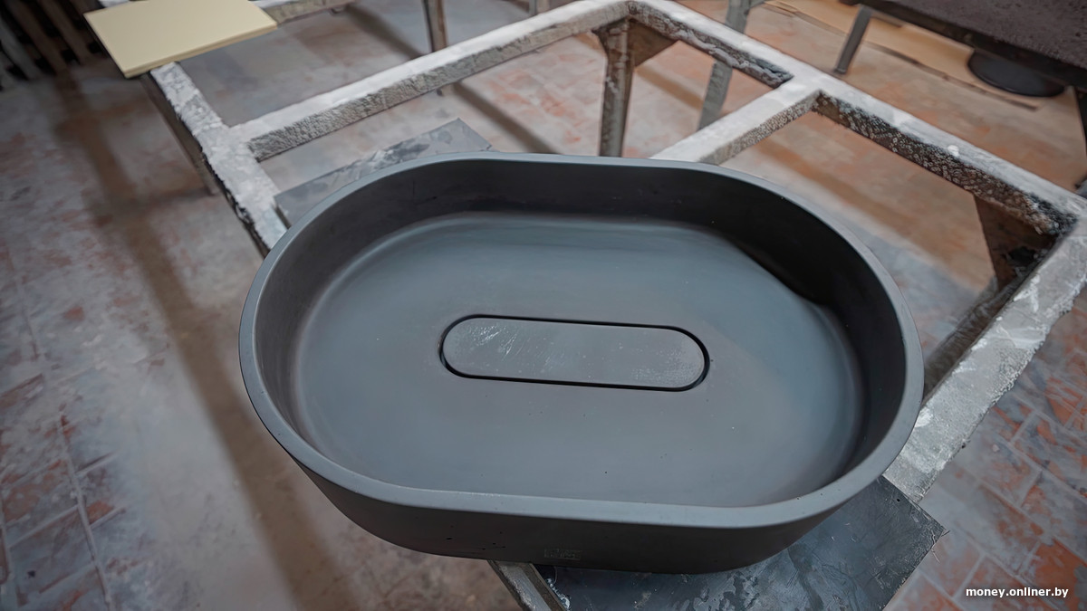 Но мы стараемся объединять заказы одного цвета, чтобы это было рационально с точки зрения замешивания и чтобы цвет не отличался. Особенно если речь идет о нескольких изделиях для одного проекта, важно, чтобы заливка шла из одной партии, потому что иначе цвет может «гулять». Песок чуть другой — и оттенок уже отличается, плюс пигмент может чуть-чуть по-другому раскрыться. Визуально это заметно, особенно на больших плоскостях.
