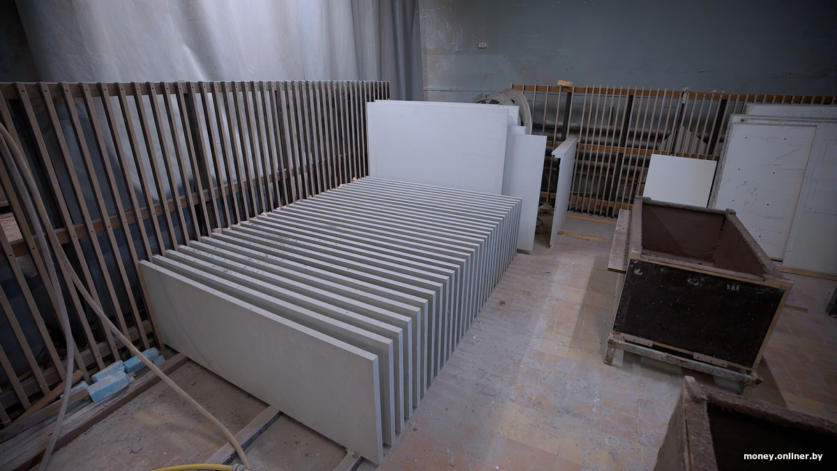 — После заливки изделие остается в форме минимум сутки. Потом мы достаем его и отправляем на участок набора прочности. Иногда мы пропариваем изделия в специальных камерах, чтобы ускорить этот процесс. Обычно бетон готов к обработке только через 21—27 дней, но мы научились доводить его до нужного состояния за полторы недели. Когда бетон дозрел, изделие шлифуют, покрывают защитным слоем и латают дефекты, если они есть.