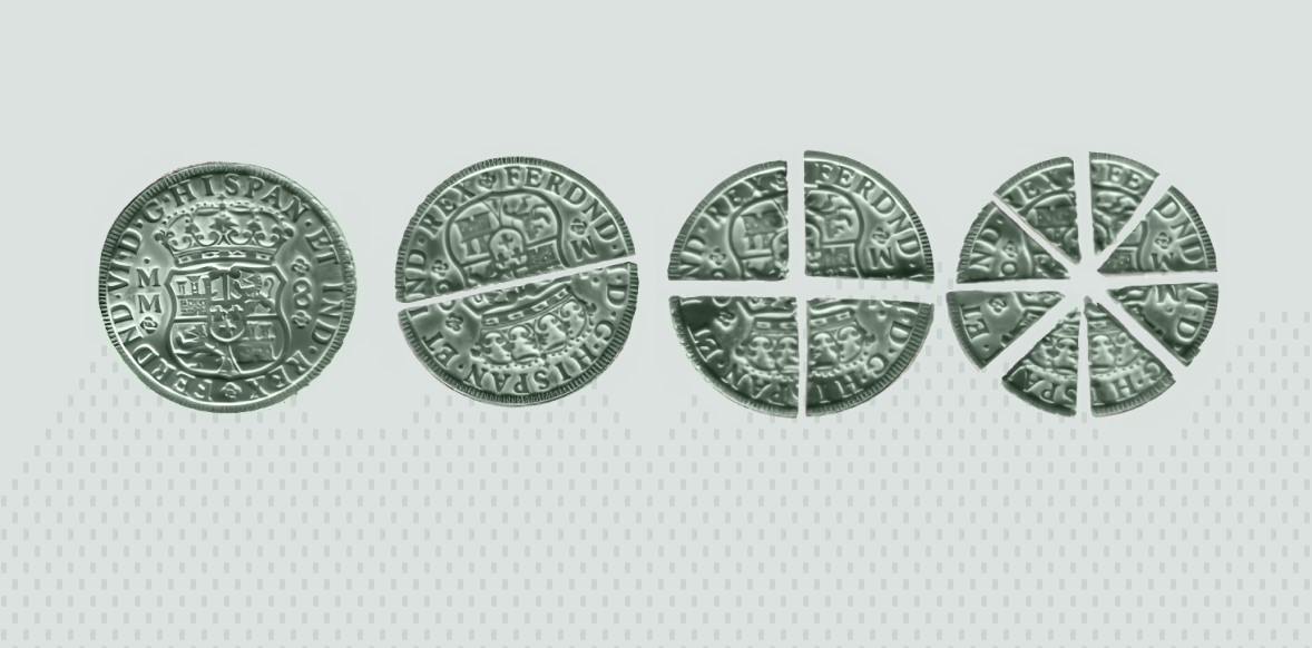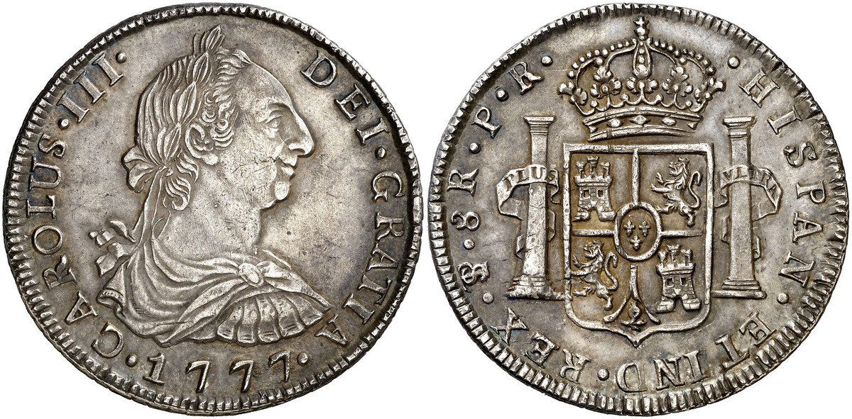 Япония поставляла на китайский рынок серебро в основном в слитках, а вот Испания наладила на своих монетных дворах в Новом Свете чеканку стандартизированной монеты диаметром 38 миллиметров и весом 25,563 грамма. Она известна под разным названиями: испанский серебряный доллар, пиастр, песо, а в английском языке еще и как piece of eight — восьмерик, из-за своей способности при необходимости делиться на две, четыре и даже восемь частей.