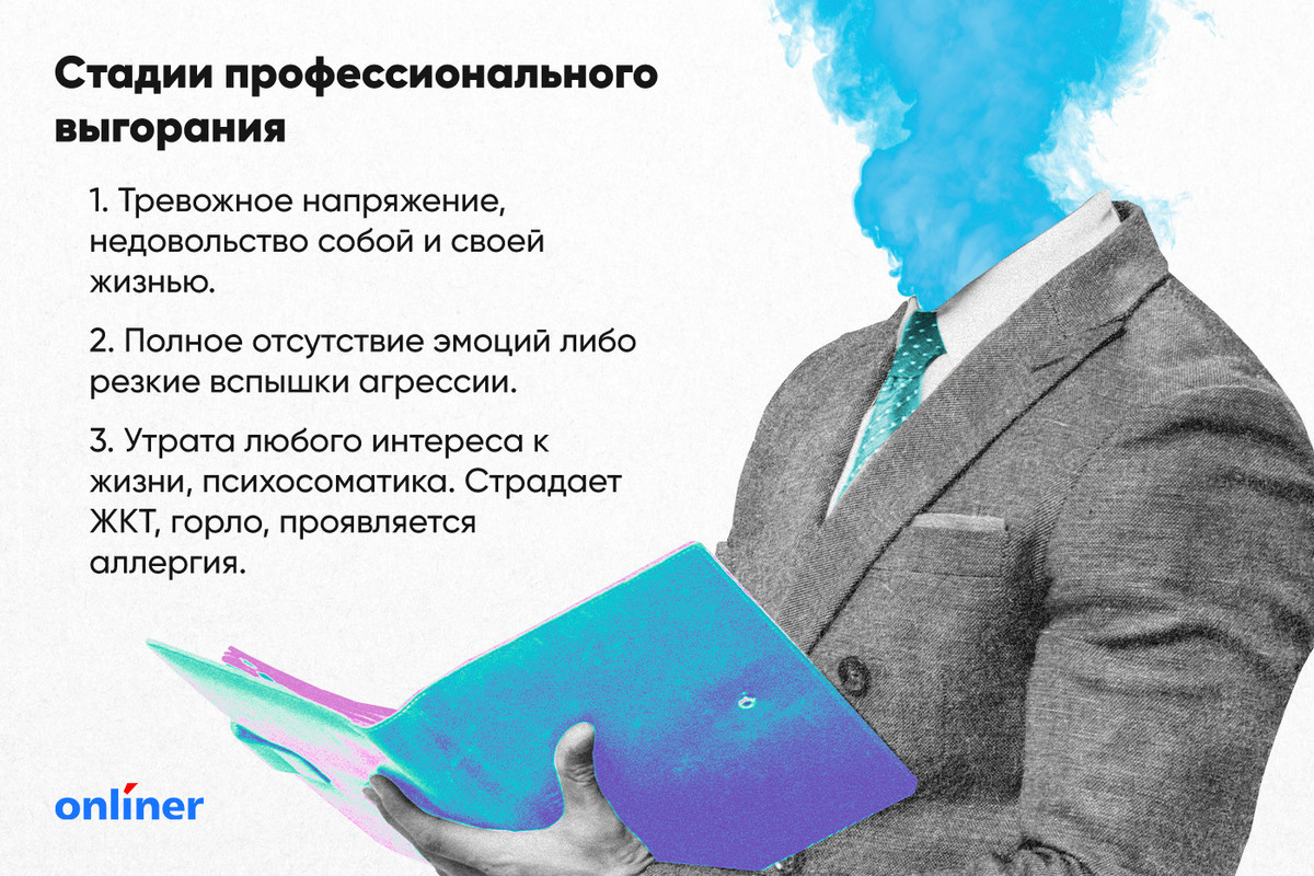 По данным опроса rabota.by, более 80% белорусов сталкивались с профессиональным выгоранием, а каждый второй предпочел бы уволиться, едва почувствовав его симптомы. Работодатели, в свою очередь, редко готовы поддерживать сотрудников в таком состоянии и просто ищут им замену.