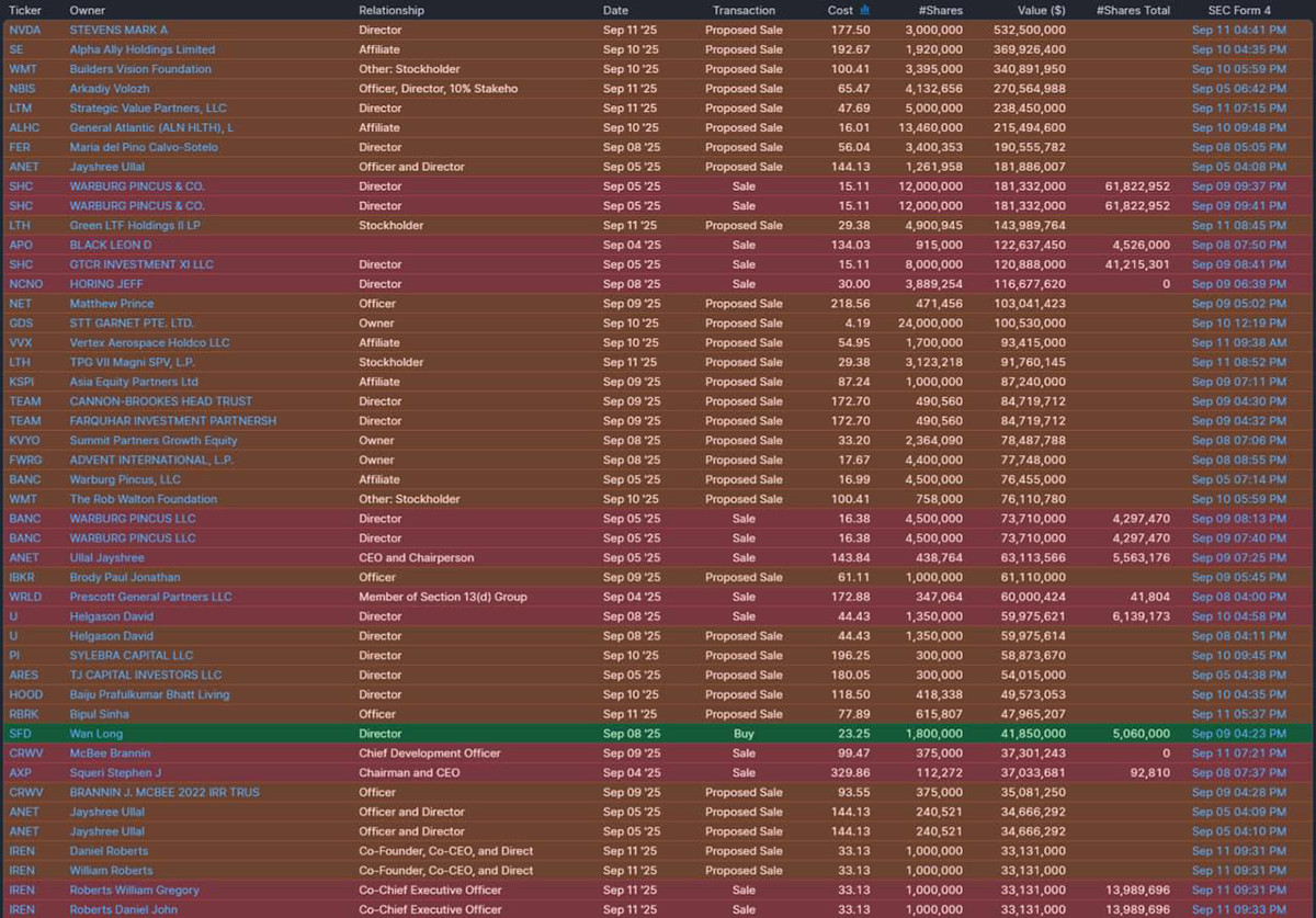 С начала сентября американские инсайдеры (директора компаний и другие топ-менеджеры, обладающие недоступной большинству участников рынка информацией) активно продают свои пакеты ценных бумаг. За первые две недели месяца 398 из 400 крупнейших инсайдерских сделок в США пришлись на продажи акций.