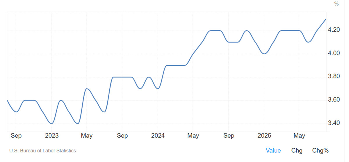 На эту информацию накладываются тревожные данные по рынку труда крупнейшей экономики мира (на графике вы видите рост безработицы):