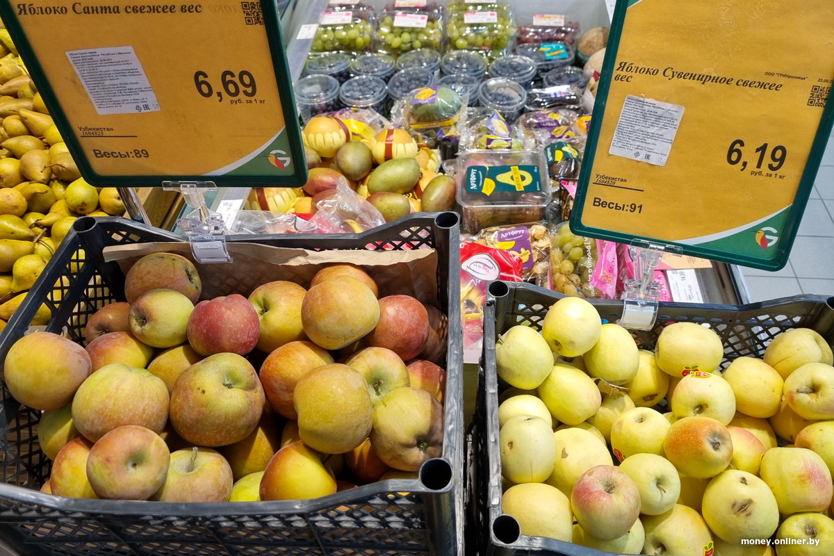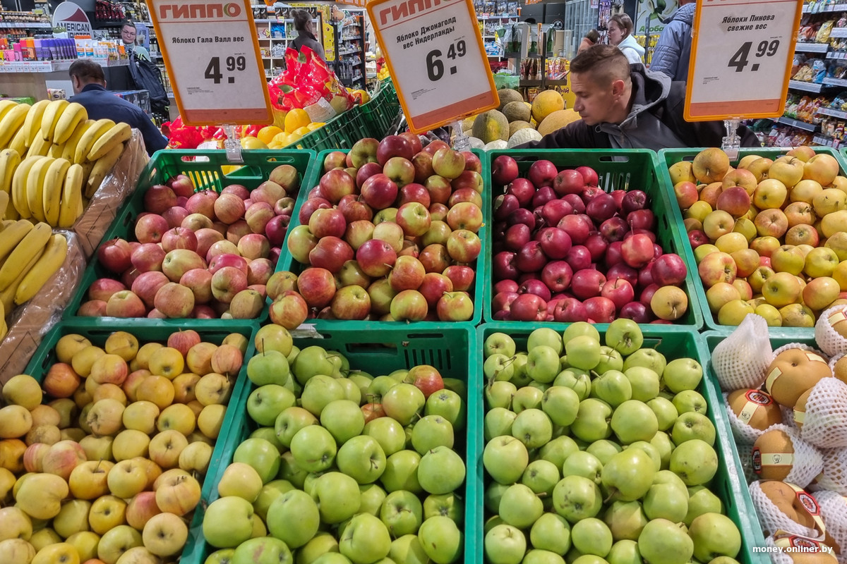 Средняя цена на белорусские яблоки в магазинах сейчас — в районе 4—5 рублей.