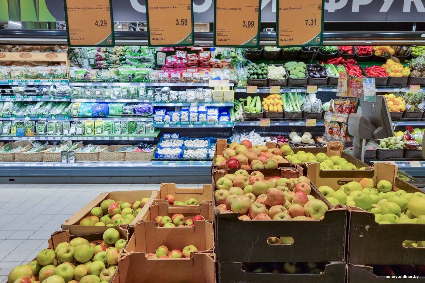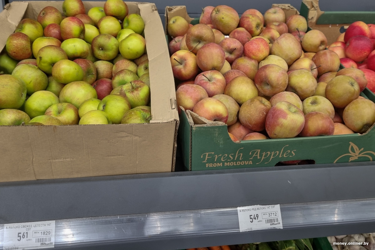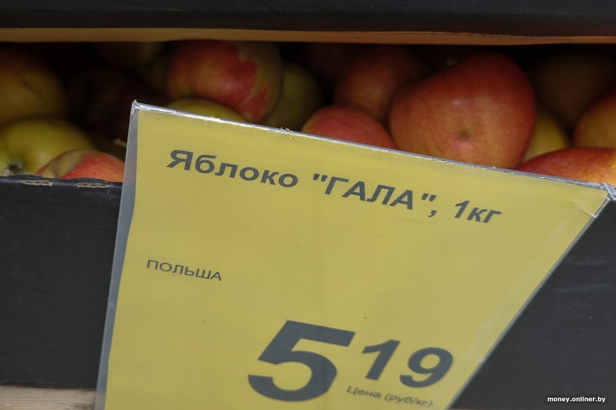 Для покупателя яблоки — это обычно внесезонный продукт, который есть на полке всегда. Летом фрукты и овощи на волне нового урожая дешевели, яблоки же, наоборот, ждали нового сбора, и средняя цена во многих магазинах была выше 6 рублей. Запасы белорусских яблок заканчивались, поэтому на полках можно было встретить много импорта: Польша, Молдова, Китай.