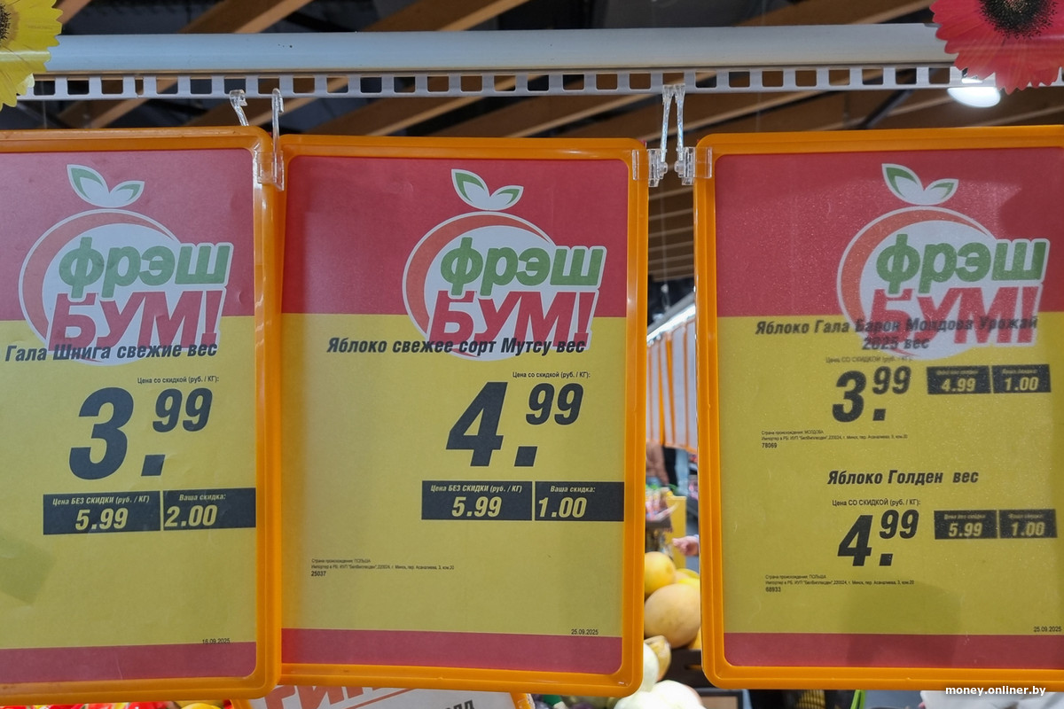 Стоит ли дожидаться выходных и идти за яблоками на осенние ярмарки? В Минске ассортимент и цены в целом повторяют бюджетные магазинные предложения: на ярмарках можно найти яблоки по 3,8—4,3 рубля, в регионах разбежка от 3 до 7 рублей.