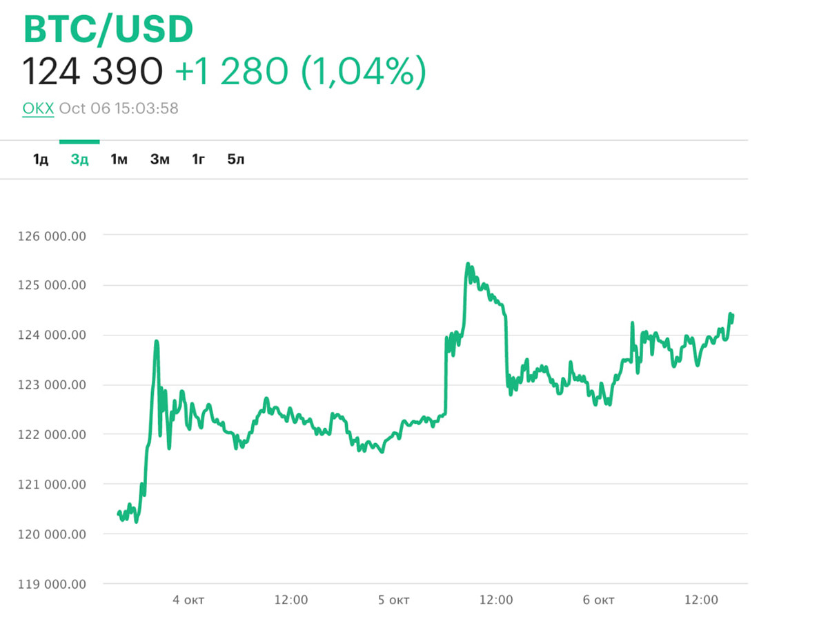 На минувшей неделе биткоин активно рос, и вчера, в воскресенье, 5 октября, впервые в истории его стоимость превысила отметку в $125 тысяч.