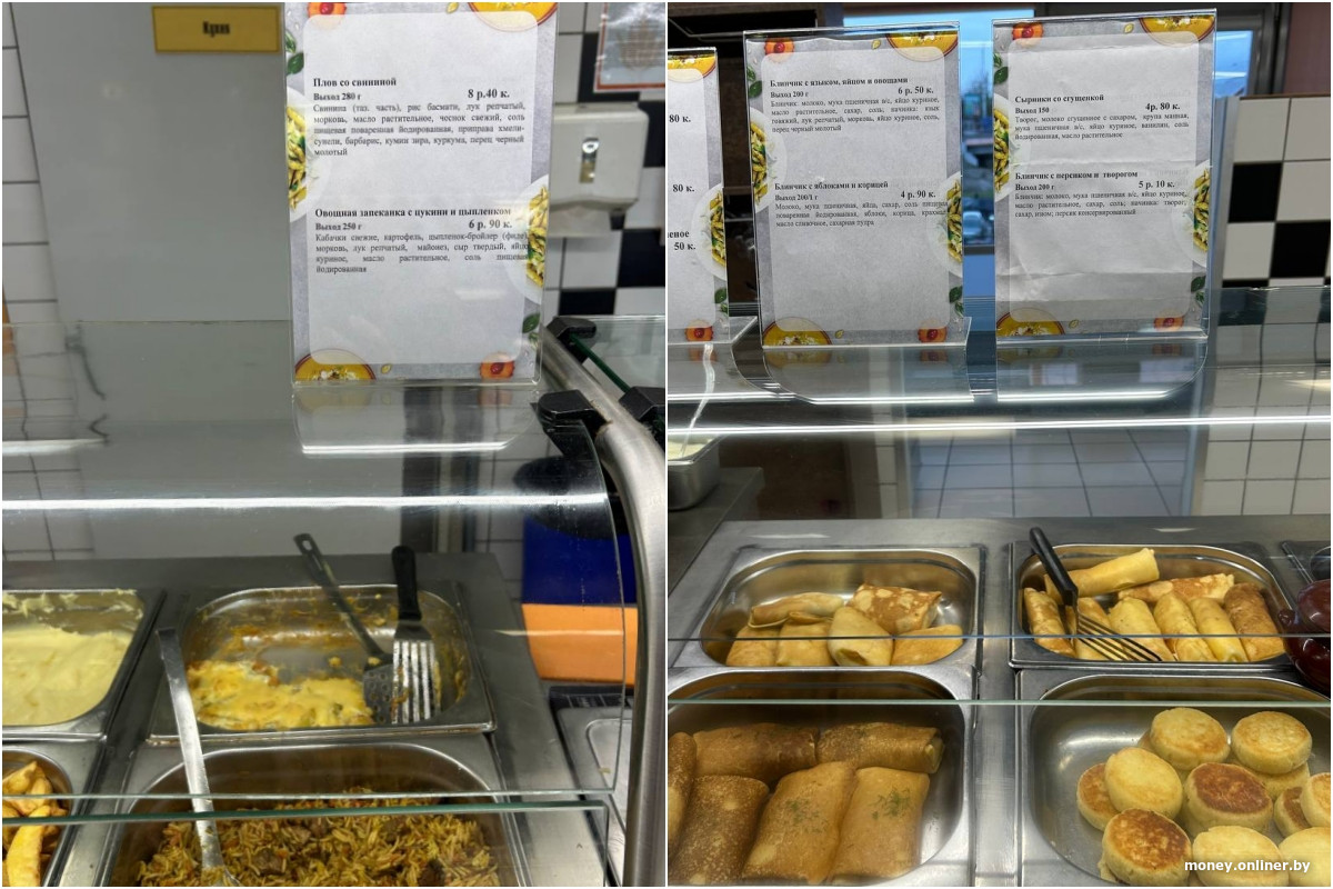 Из дешевых гарниров — гречка за 1,3 рубля и картофельное пюре за 1,75. Порция картофеля фри обойдется в 5,8 рубля, драники — в 6. Блинчики стоят от 4,9 до 6,5 рубля.