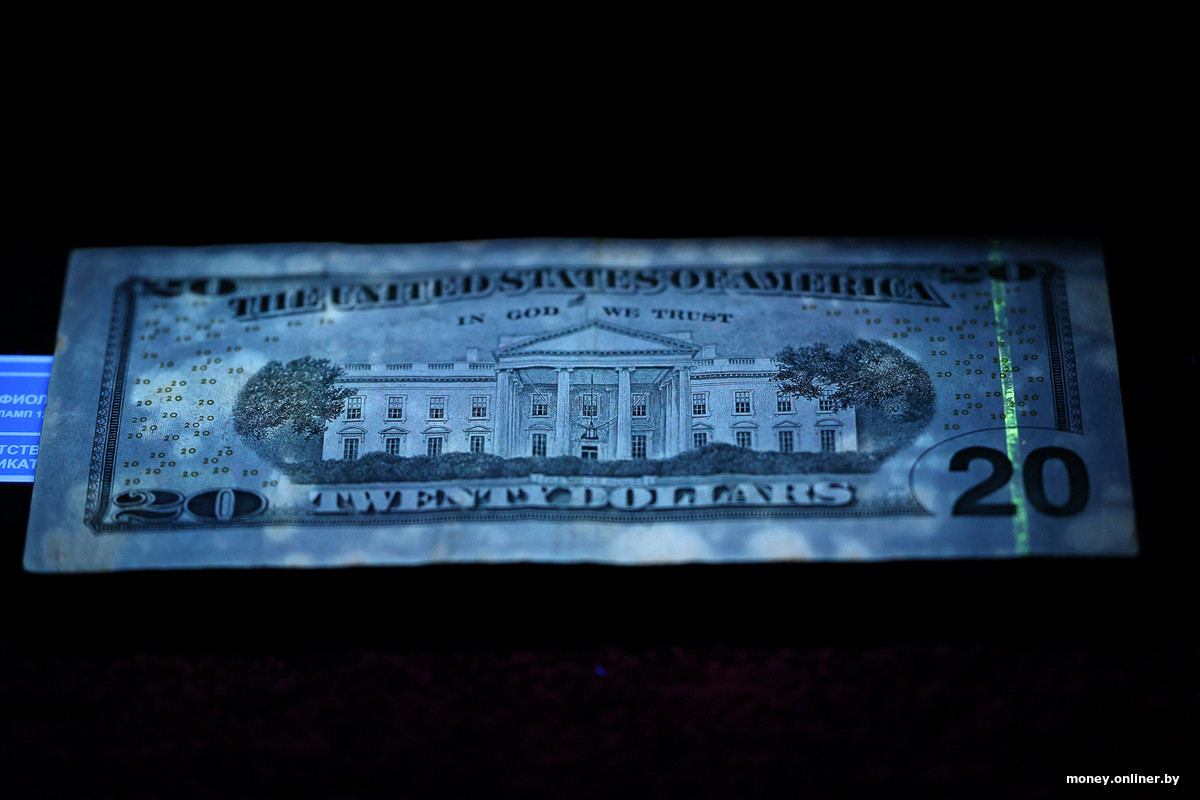 А так эти пятнистые доллары выглядят в УФ-сканере.