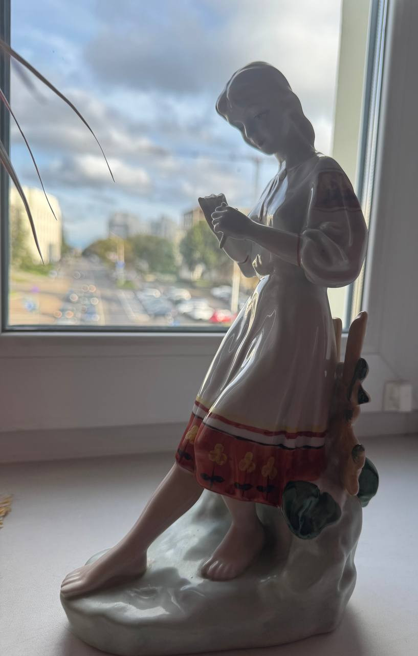 — Одна из самых популярных и распространенных статуэток в СССР. «Любит — не любит», или «Гадание на ромашке», Полонский фарфоровый завод. Стоимость, в среднем, от 40 долларов по курсу, но с годами эта статуэтка набирает свою стоимость.