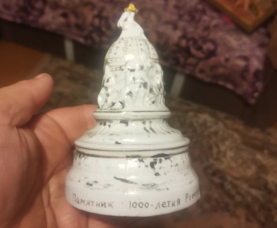 — «Памятник 1000-летия России», фарфор, Бронницкий завод фарфоровых изделий, СССР. Стоимость — от 25 долларов по курсу.