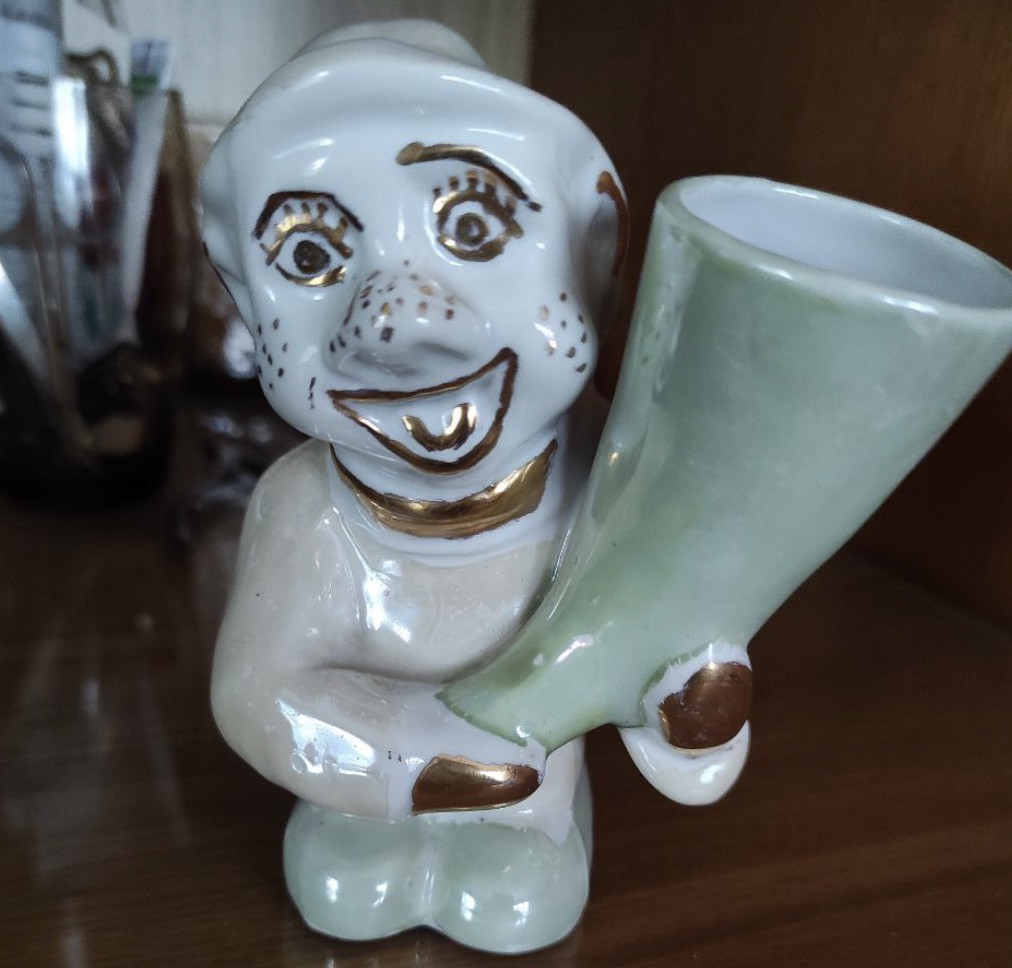— Фарфоровый гном, предположительно, Минский фарфоровый завод, вторая половина ХХ века. Если статуэтка в высоте не превышает 10 см, то стоимость на сегодняшний день не более 50 рублей. Однако изделия МФЗ с годами набирают стоимость.
