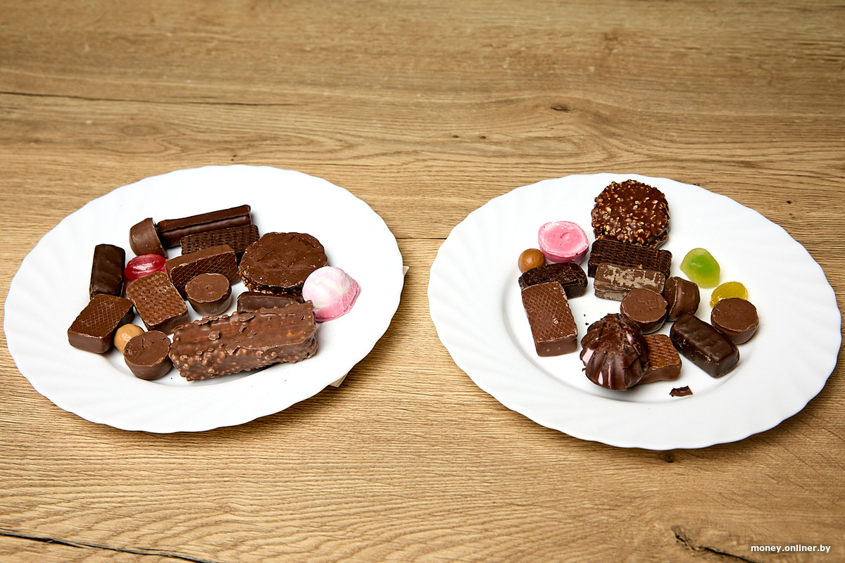 Раскрываем карты перед подопытными дегустаторами: действительно, на тарелке слева лежат конфеты из более дорогого подарка. Если в опросе вы голосовали за вариант «На левой», поздравляем: ваша интуиция сработала на ура. А чтобы понять, с чем именно связана разница в цене, предлагаем взглянуть на каждый из наборов поближе.