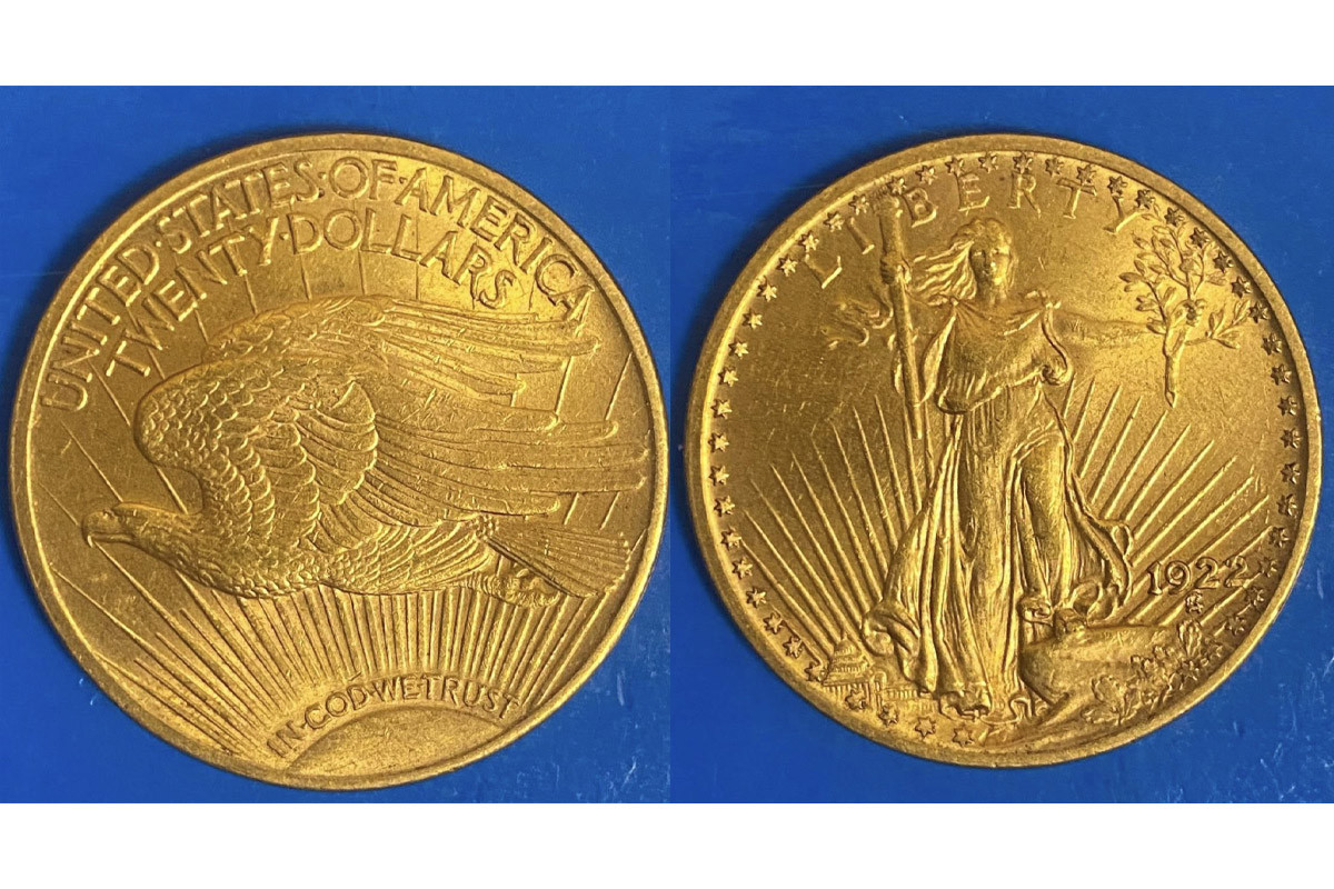 — Золотая монета США номиналом 20 долларов 1922 года, известная как Double Eagle Сен-Годена, названа по имени ее автора, скульптора Августа Сен-Годена. Выпускалась из золота 900-й пробы, вес монеты — около 33,4 грамма (в том числе 30,1 грамма чистого золота). Монета относится к самым известным и красивым золотым выпускам США, чеканилась большими тиражами, но в настоящее время высоко ценится на нумизматическом и инвестиционном рынках. Ее стоимость начинается от 5000—5500 долларов и может значительно расти в зависимости от состояния и происхождения экземпляра.