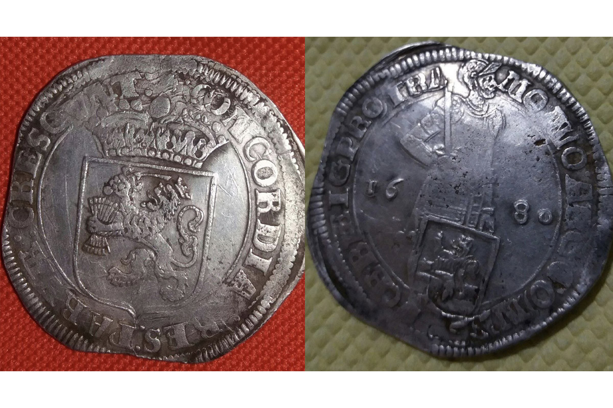— Серебряная монета Республики Соединенных провинций (нынешние Нидерланды), зильбердукат 1680 года, чеканки провинции Утрехт. Зильбердукаты выпускались большими тиражами и широко обращались в Европе, поэтому сами по себе не являются редкостью. В зависимости от сохранности цена может варьироваться, и в представленном состоянии такой экземпляр оценивается примерно в 400 рублей.