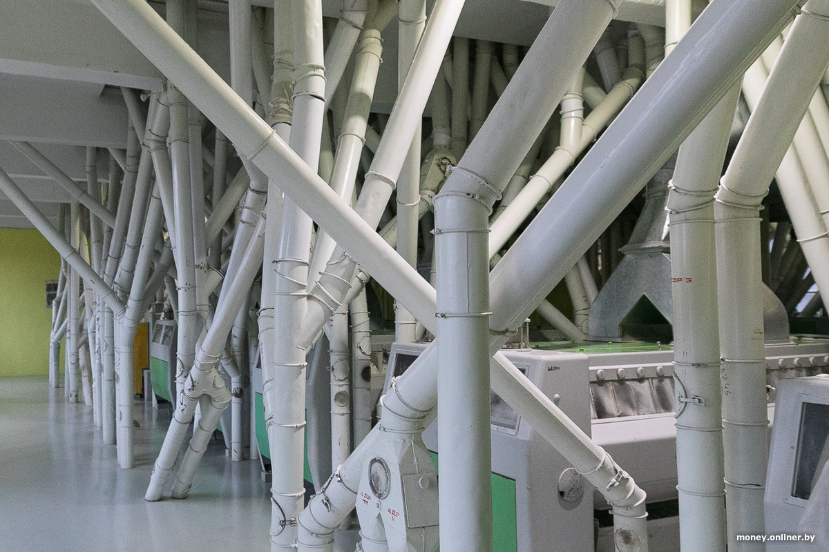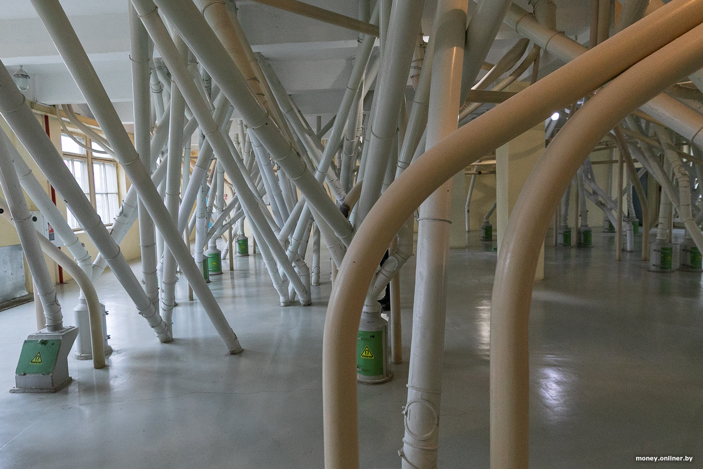 На Минском комбинате хлебопродуктов делают сырье для будущего хлеба и пасты карбонары на ужин — муку и макароны. Фотокорреспондент Onlíner заглянул в цех, чтобы показать мельницу промышленных масштабов и объемы муки, которой хватит на гигантский блин.