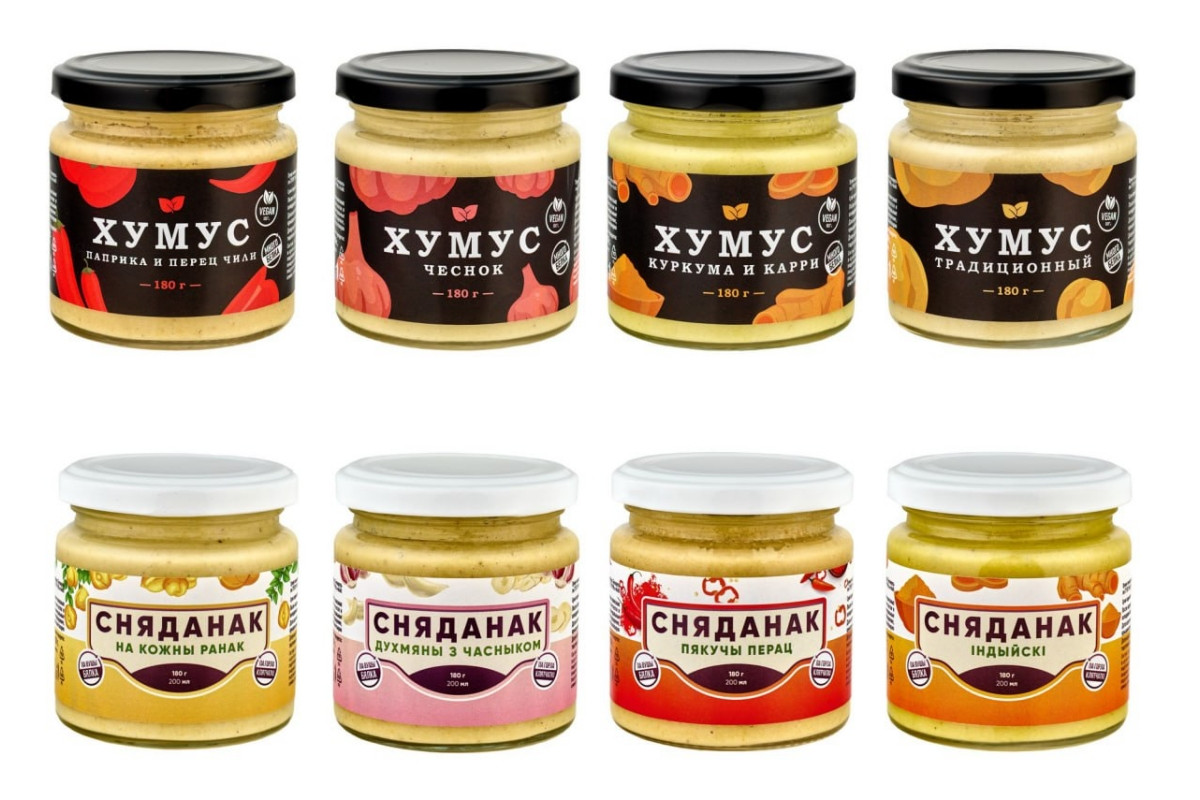 Минское предприятие «Малми групп», которое выпускает продукцию на основе разных бобовых, сделало линейку хумусов и намазок «Сняданак». У хумусов из нута есть четыре вкуса: