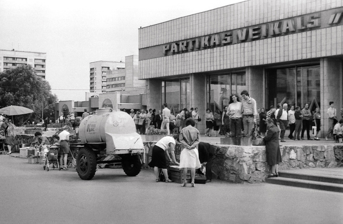 Через дорогу, на том месте, где сейчас находится Западный рынок, был сквер. А аккурат напротив «Таллина» стоял старый, обшитый листами троллейбус — его использовали как приемный пункт макулатуры и одежды, которую сдавали на вес. Летом стояли в очередях за квасом и мороженым: оно ведь раньше не продавалось, как сейчас, в зале в холодильнике.