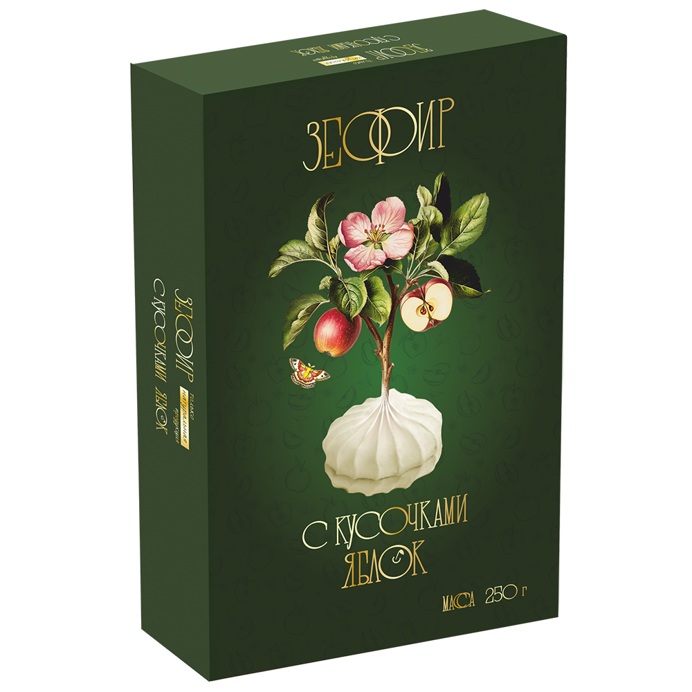 «Красный пищевик» выпустил зефир с кусочками яблок, в составе они действительно есть — сушеные резаные. В картонную пачку поместили 250 грамм десерта, новинку мы заметили в продаже в одном из фирменных магазинов.