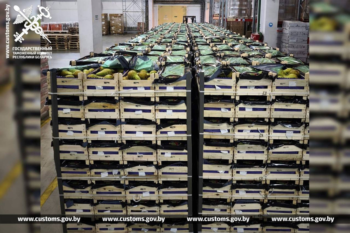 Возле белорусско-российской границы таможенники остановили три грузовика одного российского перевозчика. В каждой фуре было по 20 тонн груш, которые пытались вывезти в Россию.