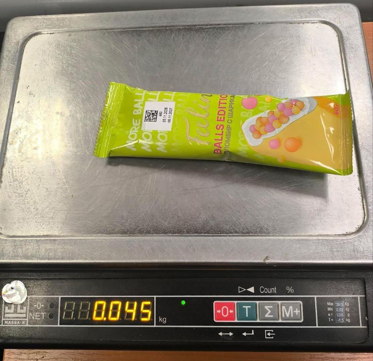 — Так мы и увидели, что вес составлял всего 45 граммов, а не 60 заявленных. А это, между прочим, 25% от заявленного веса. Тогда мы вернулись в зал и взяли другое мороженое (с таким же вкусом). К удивлению, вес у всех варьировался от 45 до 55 граммов.