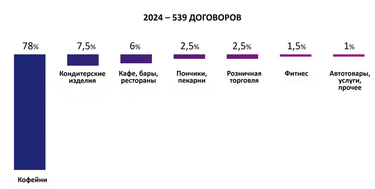 — Мы начали 2025-й с высоким барьером: предыдущий год оказался рекордным для рынка франшиз в Беларуси. Если смотреть по зарегистрированным договорам, то 2024-й был аномально сильным: было зарегистрировано 540 договоров, что почти в три раза больше, чем в 2023-м.