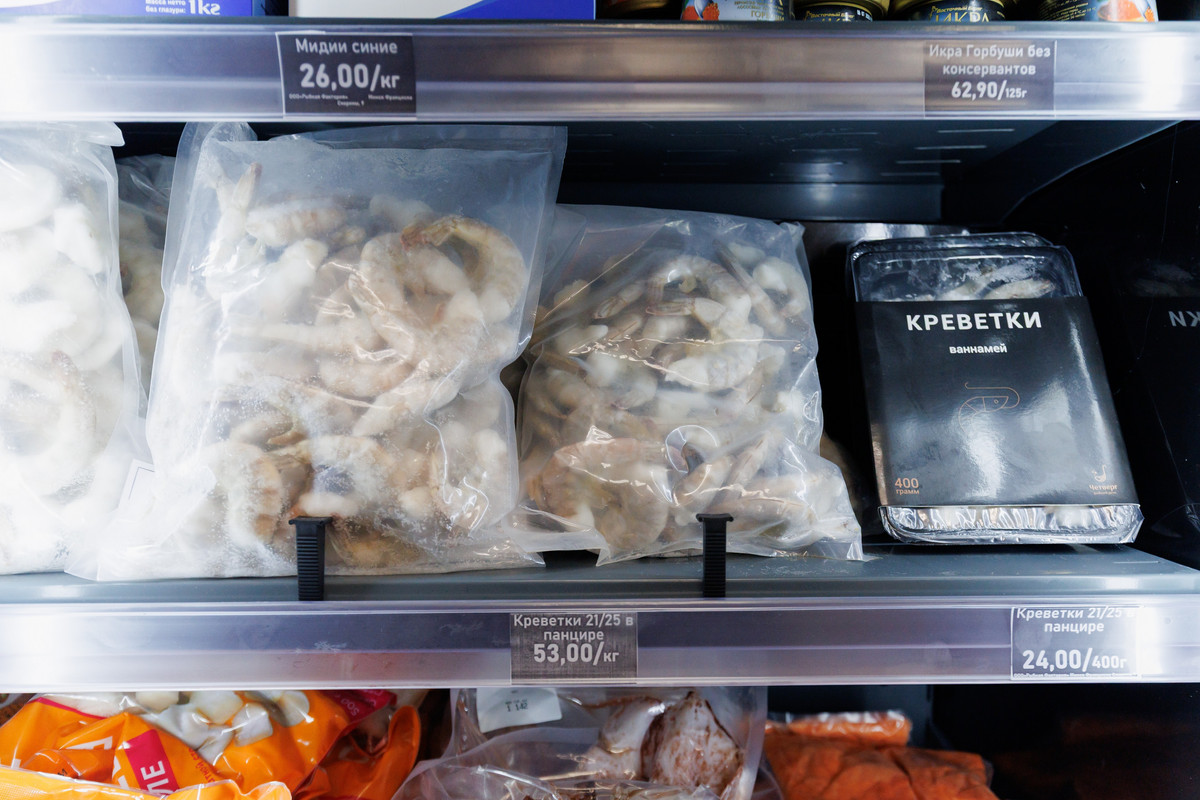 Цены такие: охлажденный норвежский лосось — 49,9 рубля за кг, голландская сельдь «Матье» — 41,9, синие мидии — 26, кальмары — 25, гребешки — 35. Баночка отборной икры горбуши обойдется в 48,5 рубля за 100 г. Супы с порциями на двоих стартуют от 19,8 рубля, гёдза — от 15,5, палочки из минтая — 12,9, а фишболы — 14,49.