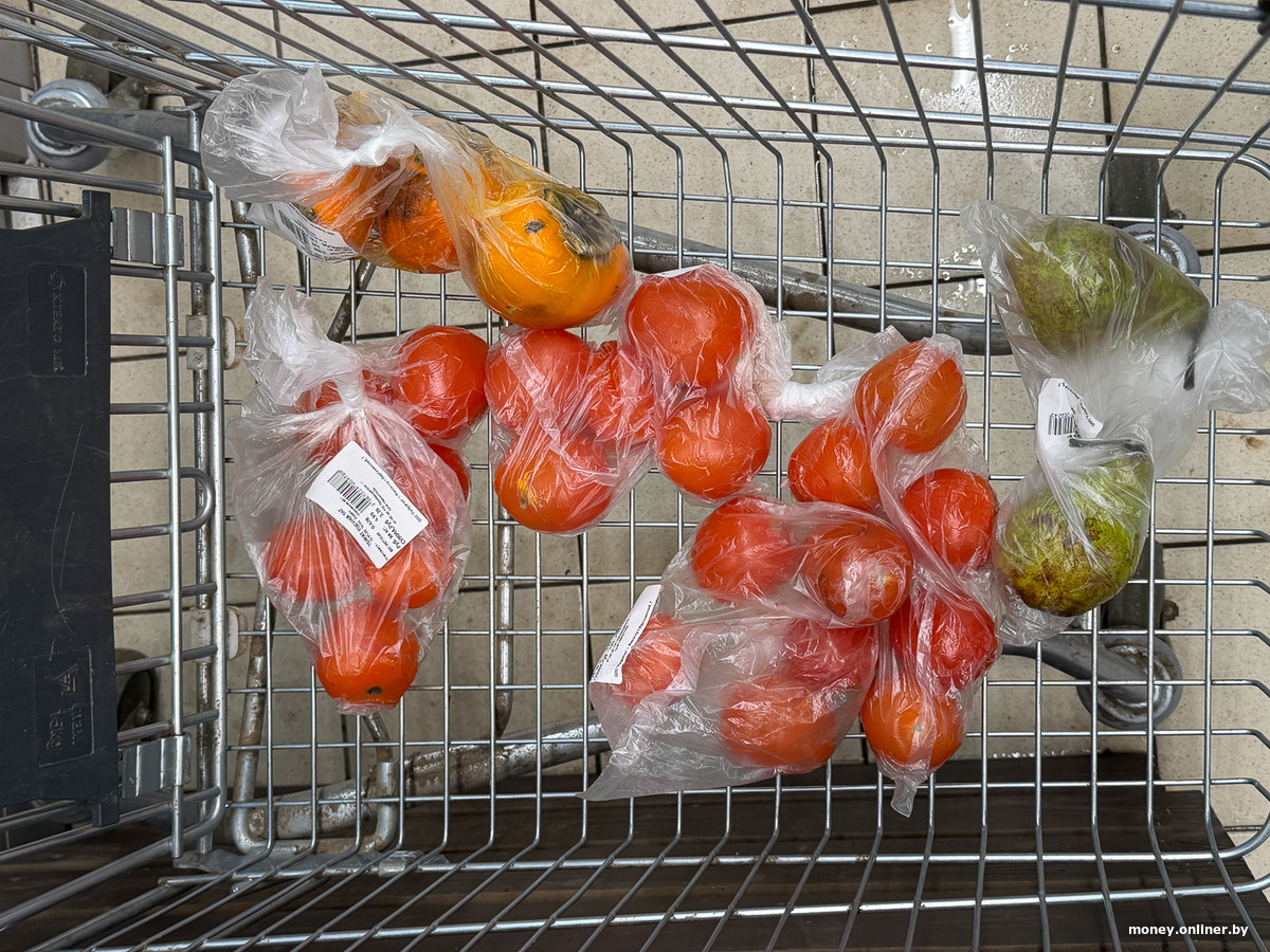Еще один мужчина постарше присматривает икру, девушка выбирает пачку семечек. Молодой человек шагает в сторону кассы с тестом и двумя банками энергетика. Самая большая продуктовая корзина выглядит так: икра, горчица, батон, минералка, помидоры, огурцы — такую держит мужчина в очереди на кассу.