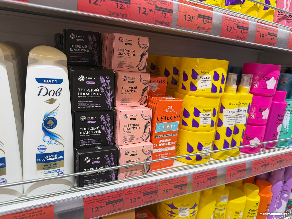 С уходовой косметикой соседствует декоративная — замечены зарубежные массмаркет- и белорусские бренды.