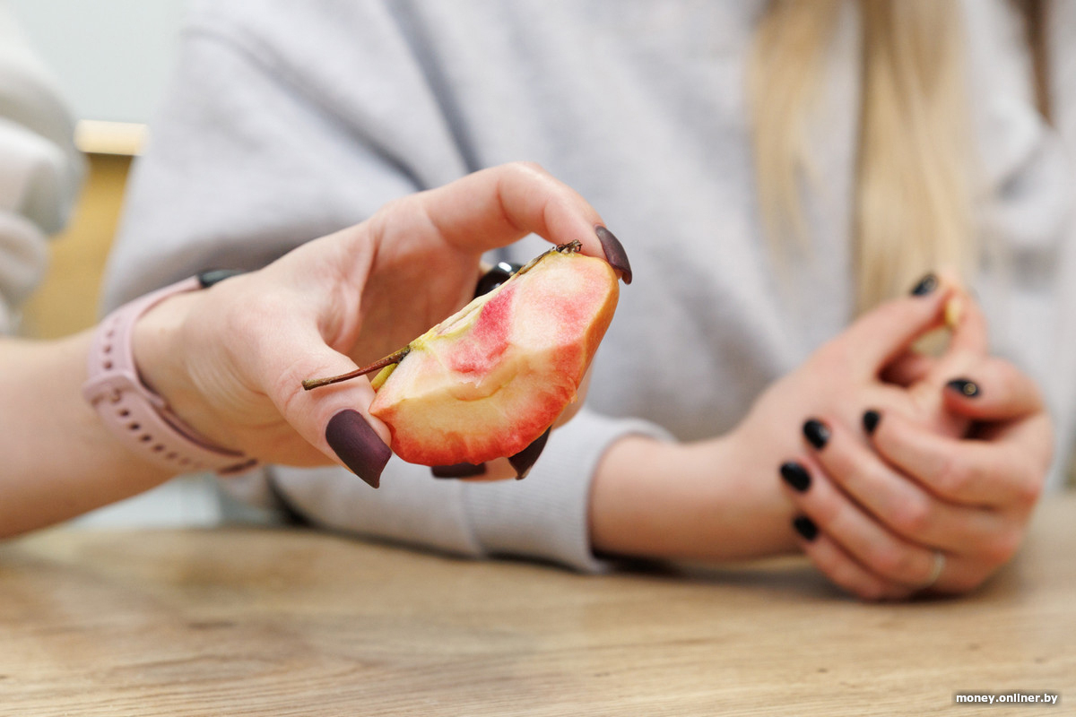 Роль дешевого продукта сегодня исполняют белорусские яблоки сорта «Айдаред» — получается, Павел, сам того не зная, верно определил сорт по вкусу. «Айдаред» обычно описывают так: кисло-сладкий вкус, слабо выраженный аромат, сочная и плотная мякоть во время сбора, которая со временем становится мелкозернистой. Наши яблоки куплены в одном из столичных супермаркетов: четыре штуки потянули на 1,3 килограмма, а на кассе покупку пробили за 5,67 рубля.