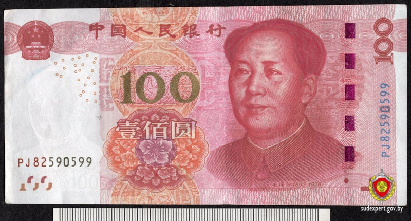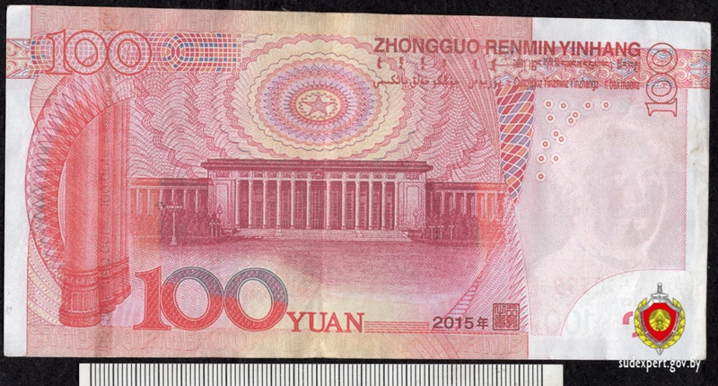 Судебный эксперт установил: эта сотня юаней образца 2015 года изготовлена не предприятием, выпускающим продукцию этого вида. Все изображения выполнены способом струйной печати, а элементы защиты имитированы различными способами. В Госкомитете судебных экспертиз отмечают, что именно комплекс способов подделки элементов защиты для Беларуси новый.