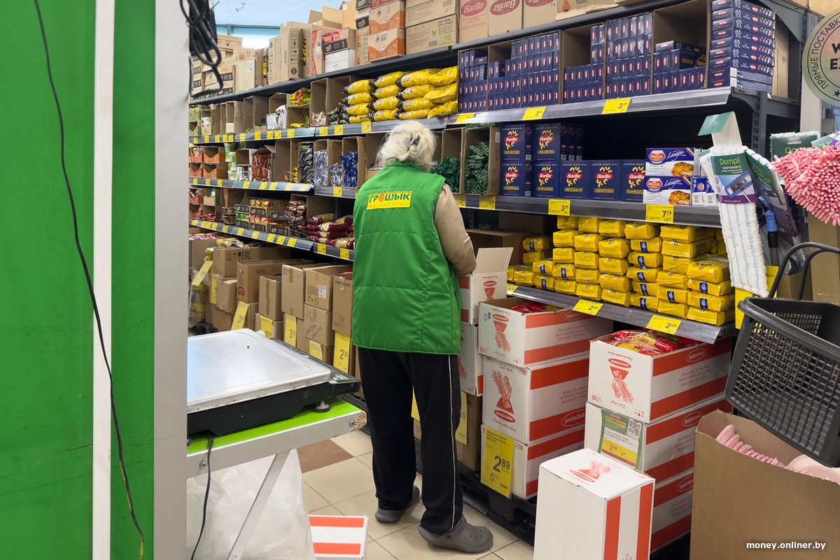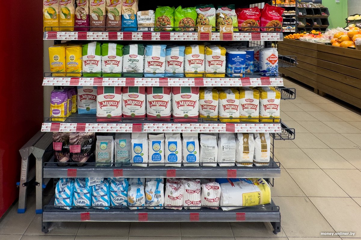 Если оглянуться, в поле зрения попадут носки, стиральные порошки и базовая бытовая химия, канцтовары и детские соки, лапша быстрого приготовления и полка с мукой.