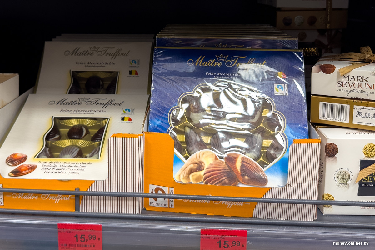 Отмечаем отдельную металлическую полку с листовками «Успей купить» — в этот момент там со скидкой в 40% продаются коробки конфет белорусского производителя. Проверяем срок годности: заканчивается через несколько дней.