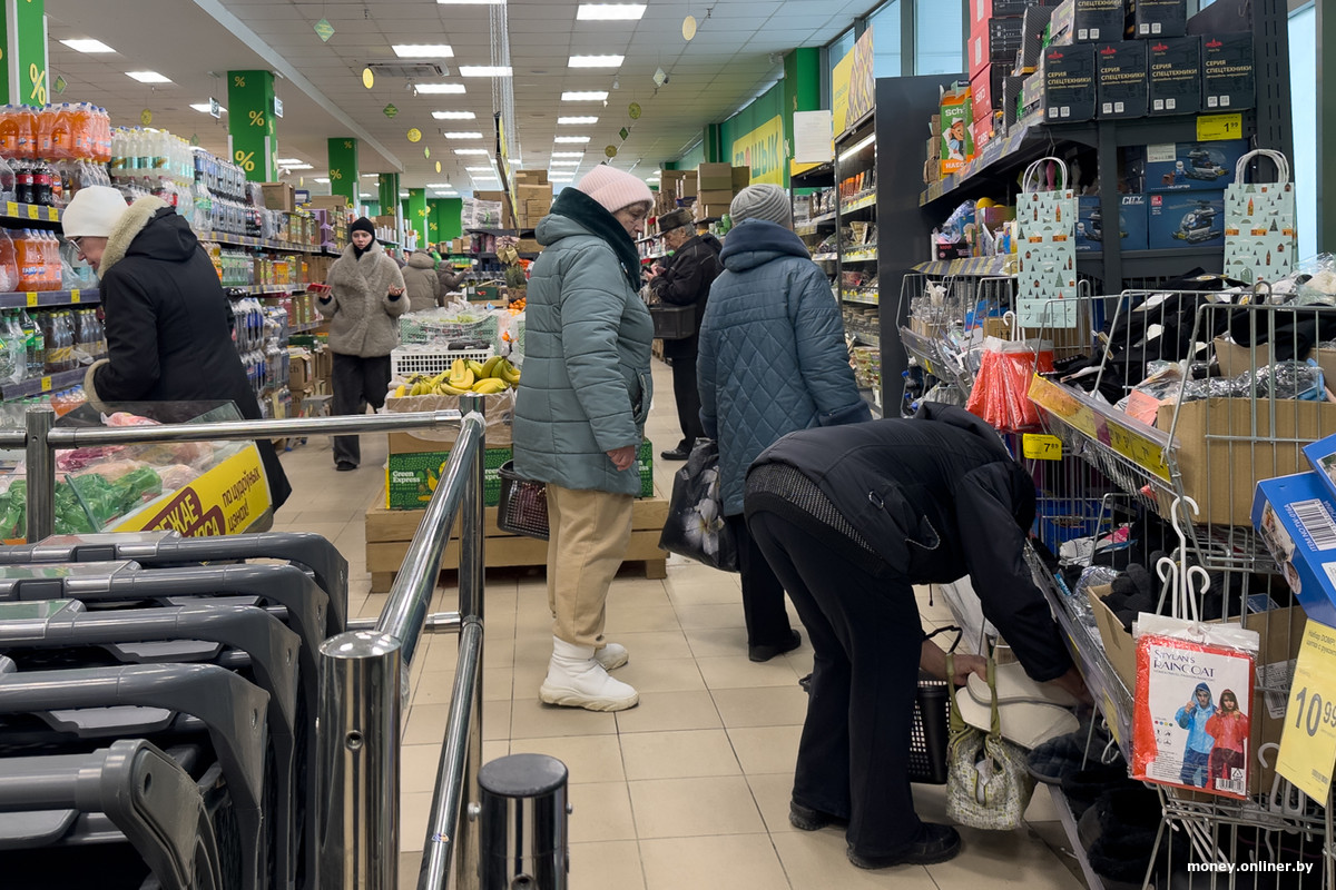 Например, одна девушка зашла за булочками, другая уносит пару пачек макарон. В корзине одной из покупательниц замечены салат и серые пушистые тапки. Еще одна женщина, помимо трех куриц, увозит в тележке в сторону кассы кусок мяса и вакуумную упаковку с замаринованным мясом. Еще один подсмотренный вариант добычи — два банана и упаковка туалетной бумаги.