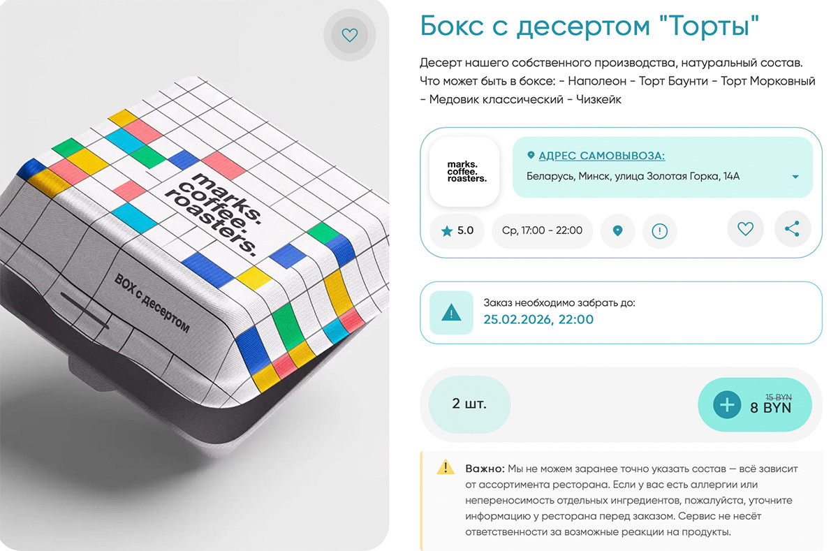 В Беларуси появился новый сервис по спасению еды из кафе и ресторанов. Покупателям обещают скидки и секретные боксы, заведениям — что больше не придется списывать выпечку, ланчи и салаты, которые мог кто-то съесть. Как это работает, что продают и есть ли реальные скидки — узнали и рассказываем вам.